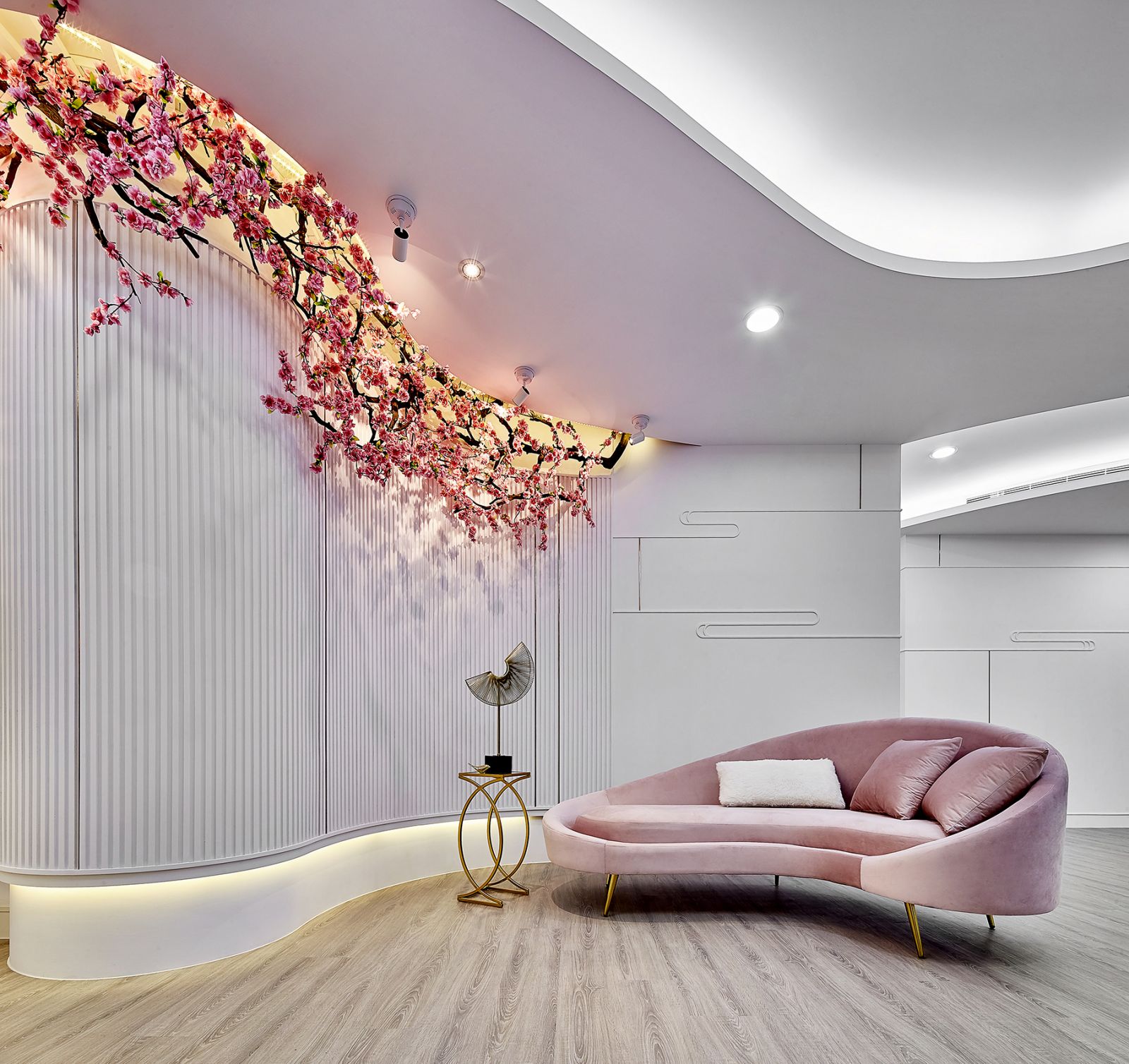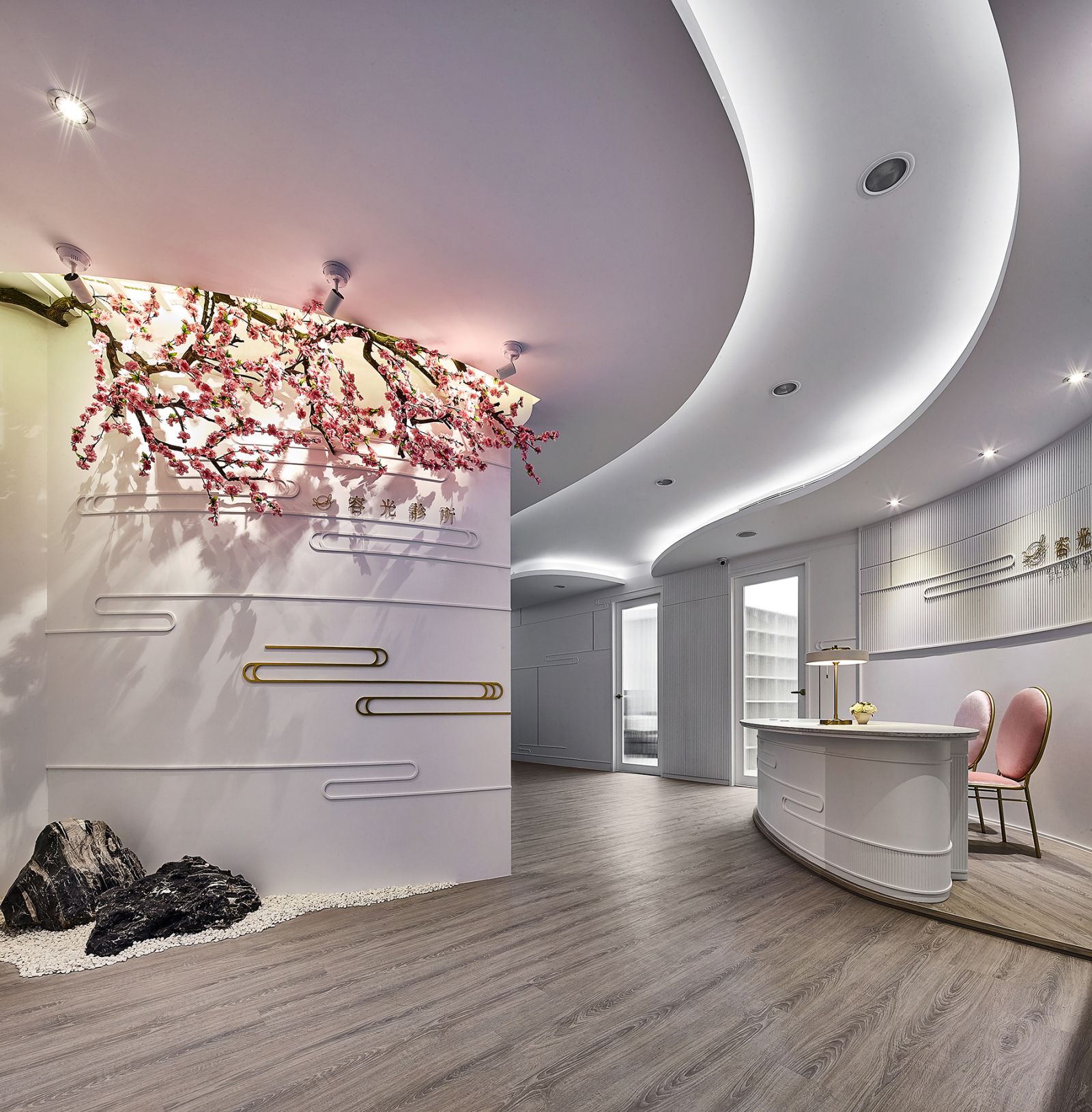 在競爭激烈的塑美市場中,除達到原有基本需求外,更必須在空間設計上添加些許巧思,以與其他塑美空間區分開來。當確認是”存奕美學診所”名稱時,靈光乍現的讓我想到李白所寫之《清平調》中:”雲想衣裳花想容‧春風拂檻露華濃....” 這兩句詩詞,讓這空間設計表現上有了初步想法。